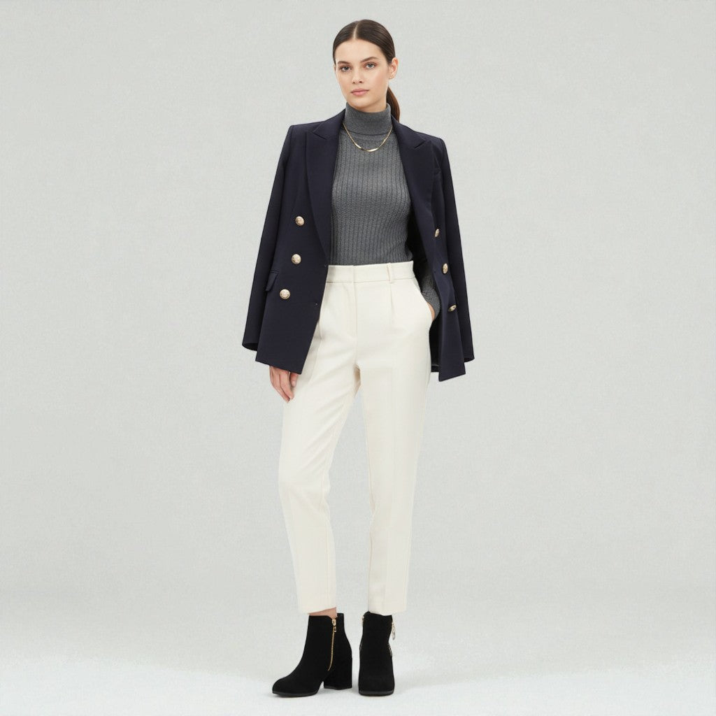 - Comfort Block Heel: Height that elongates the silhouette while remaining comfortable to walk in.